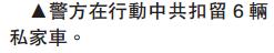 警方西九龍交通部執行及管制組主管劉達輝總督察表示,上月開始警方派員「放蛇」喬裝乘客,以手機應用程式多次租用Uber私家車,警員搜集證據后,至昨日采取拘捕行動,西九龍、東九龍及新界南總區人員,展開進行代號「破繭」行動,在九龍塘及將軍澳等地點,先后拘捕22男女,扣留6輛私家車。
