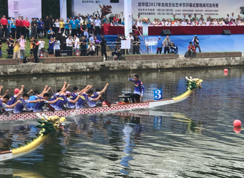 【香港商報网訊】记者王娜、通讯员彭桂红、李世钊报道:观澜河畔,锣鼓声喧,百舸争先。5月23日,来自海内外的24支龙舟队在观澜河上激情竞渡,观澜河龙舟赛业余组和公开组决赛,拉开了龙华区2017年龙舟文化艺术节帷幕。深圳市政府副秘书长刘佳晨,深圳市文体旅游局副局长韩星元,龙华区几套班子领导陈清、钟荫腾、苗宁礼等出席了开幕式。