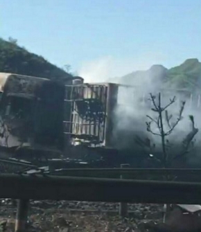 5月23日6时30分许,河北张石高速公路302公里加400米处浮图峪5号隧道发生一起车辆燃爆事故。经初步勘查,目前事故造成12人死亡,8辆货车、1辆小客车受损。