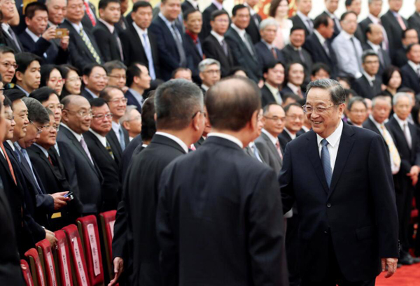 中共中央政治局常委、全國政協主席俞正聲隨後會見了參加慶祝大會的台商代表並講話。俞正聲表示,習近平總書記的賀信體現了大陸明確、一貫的對台大政方針,表明了新形勢下促進兩岸經濟社會融合,歡迎和支持台灣同胞在大陸發展的政策主張。一是堅持「九二共識」,堅決反對「台獨」,持續促進兩岸各領域交流合作,不斷深化兩岸經濟社會融合發展,增進兩岸同胞的福祉和親情,團結台灣同胞共同建設好兩岸命運共同體;二是希望廣大台灣同胞能搭上大陸發展的快車,歡迎廣大台灣同胞來大陸投資興業,將繼續為台商台企在大陸發展提供更為有利的條件,讓廣大台灣同胞更深切地感受兩岸一家人、兩岸一家親;三是希望全國台企聯和廣大台商發揚敢為人先、勇於擔當的精神,堅持一個中國原則,廣泛團結台灣同胞,為維護和推動兩岸關系和平發展、促進兩岸經濟社會融合發展、實現中華民族偉大復興作出更大的貢獻。