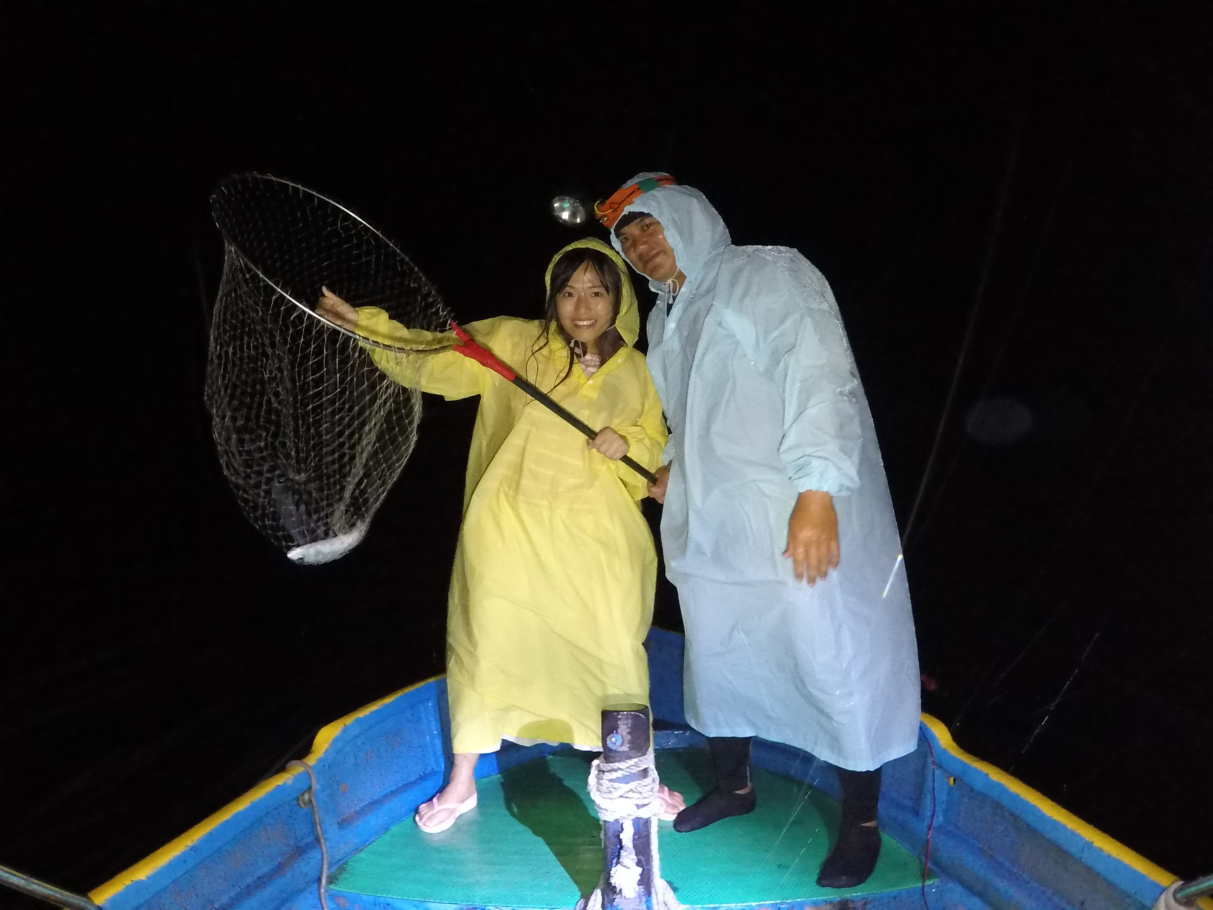 進到島上,筆者即隨導遊出海體驗重頭戲捕飛魚活動,惜遇上傾盆大雨,漁獲僅得8條,相比晴天時最少可捕50條飛魚大有距離。不過在漆黑一片的海上淋雨,並用手提電筒搜尋飛魚,再站在船頭用網把牠們一條一條撈上船,那儼如置身荒野求生的感覺非常刺激﹗原住民捕獲後會於海邊先刮除魚鱗,回家後再剖開魚腹,取出魚眼和內臟,並兩邊各切3至4刀(各部落有不同規定),最後以繩子將飛魚掛上竹竿製成飛魚乾或立刻吃掉。