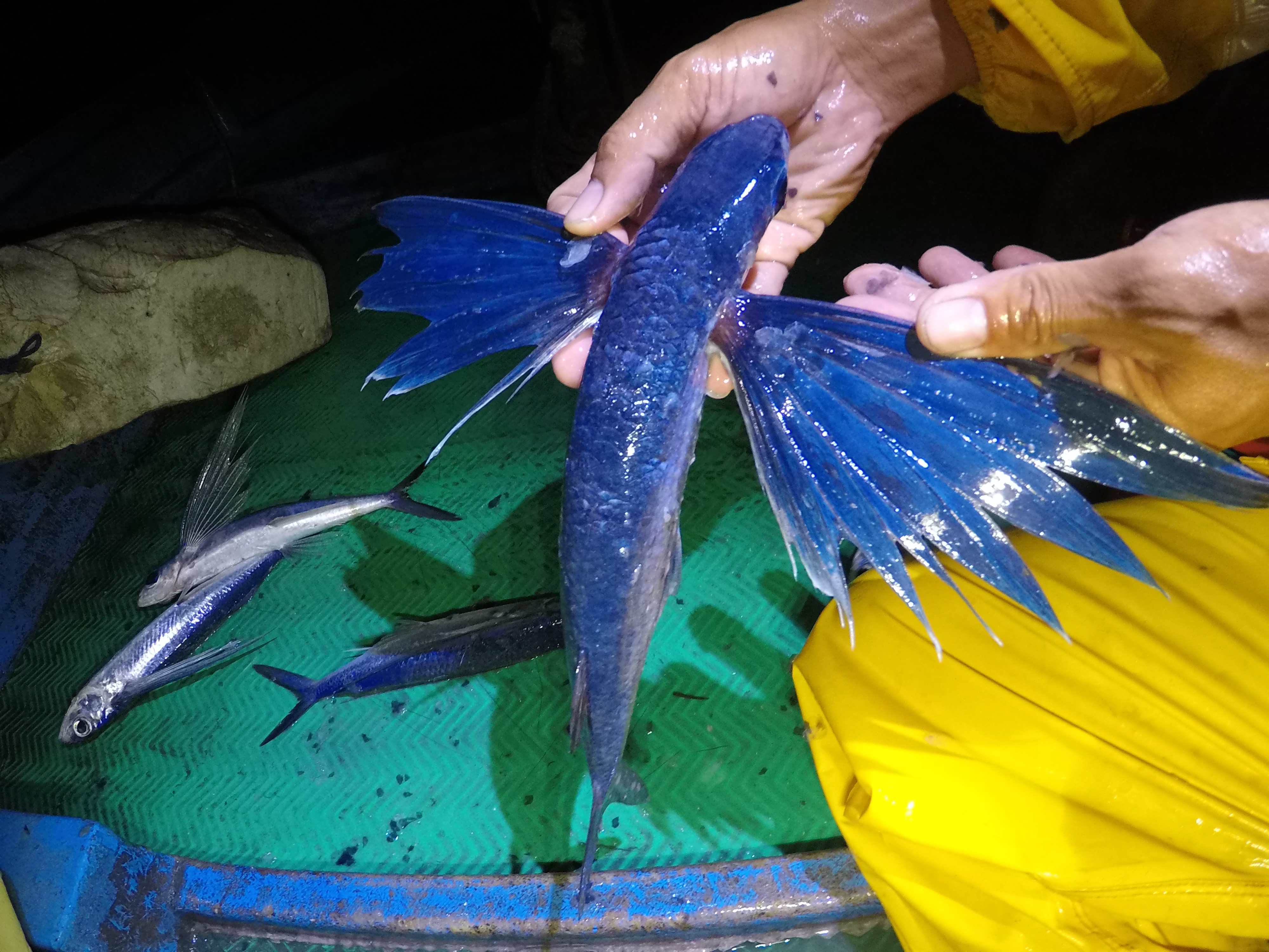 寶藍色飛魚屬貴族,一般飛魚的翅膀以透明為主。