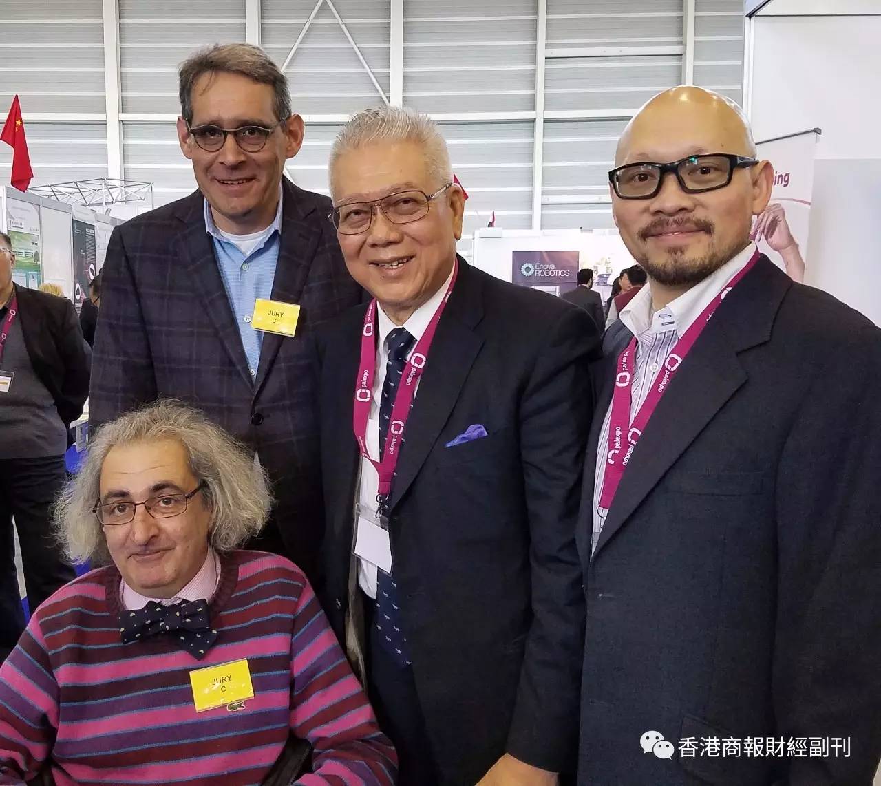 袁思明(右三)早前在瑞士日內瓦國際發明展覽會,憑念恩網奪金而回,為港人爭光。