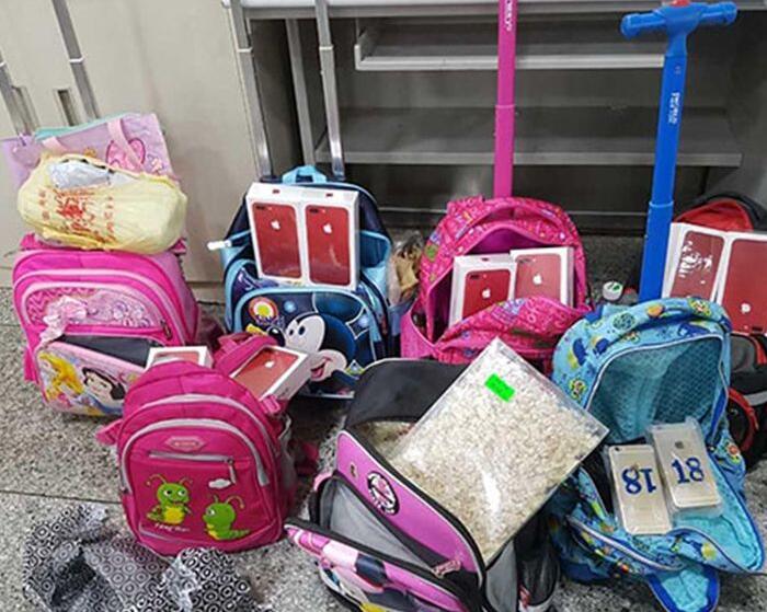 書包裝滿未向海關申報的全新高檔手機、高檔盒裝燕窩。