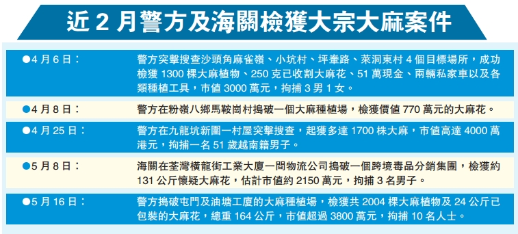 警方相信這批大麻花由加拿大運來本港,會在本港銷售,由於行動仍繼續進行,不排除有更多人士被捕。