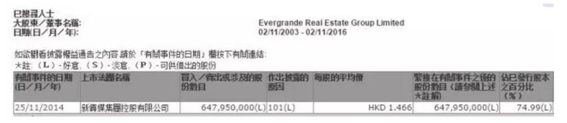 在港股摸爬滚打了几年后,许老板终于在港股资本市场行动了。2014年11月先花了9.5亿港币,从英皇老板杨受成手中买入了新传媒74.99%的股权,新传媒停牌前的收市价0.475元,许老板给了3.1倍的溢价,相当于市盈率112.8倍。