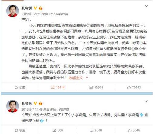 这事一出来,远在德国带队打比赛的孔令辉更新了四年零三个月未再发布消息的微博↓↓↓