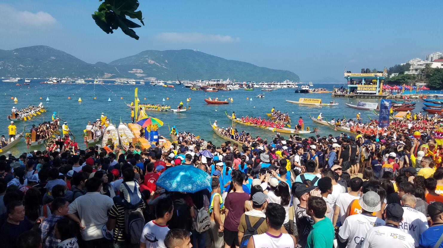 在赤柱舉辦多年的「赤柱國際龍舟錦標賽」昨日吸引不少市民及游客到場,而且陽光普照、天氣極佳,更有市民帶同子女到沙灘游「龍舟水」應節,令整個赤柱變得人山人海、水泄不通。赤柱居民會主席王錦泉表示,現場氣氛十分熱鬧,設有10個游戲攤位、3檔手工藝攤位、4檔飲品供應,讓到場人士可參與不同的活動。他認為,今年到現場觀賞賽事的人也比往年多,相信好天氣也是其中一個因素。