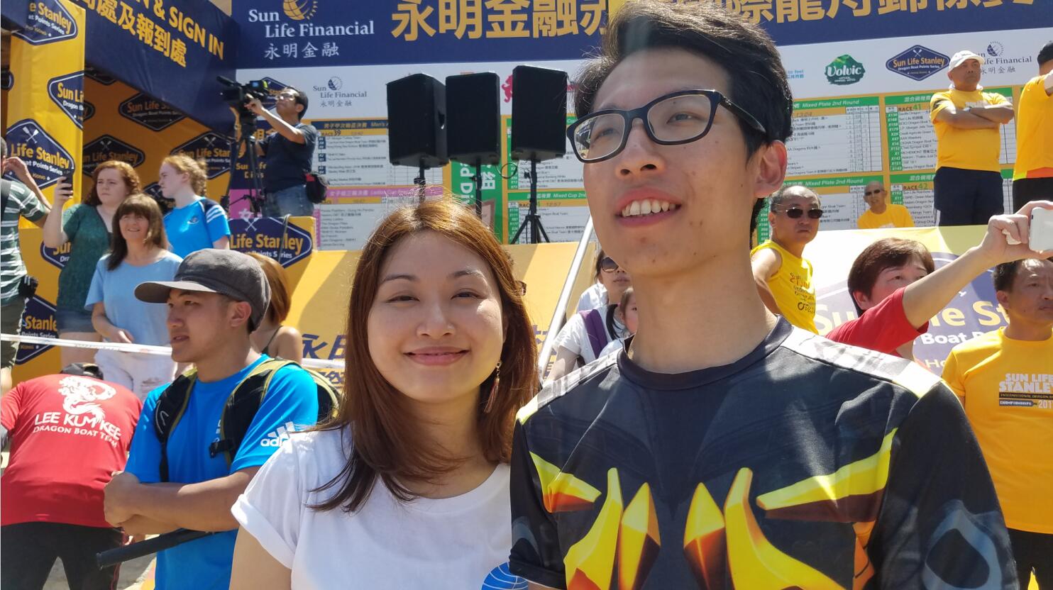 施小姐(左)特意到场支持男友许先生(右)的龙舟赛。