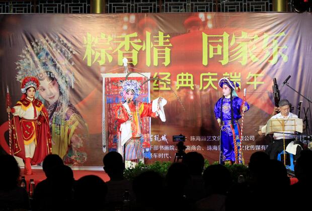 【香港商報訊网】記者陸紹龍報道:5月29日晚,“粽鄉情,同家樂——豫劇經典慶端午”文藝晚會在“市民戲園子”珠海古玩城拉開大幕,來自深圳梨園豫劇演出團體的藝術家們,為珠海豫劇愛好者帶來《百歲掛帥》、《花木蘭》、《穆桂英掛帥》等經典豫劇片段。