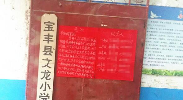 通知顯示:寶豐縣文龍小學在上級近期督導檢查中存在辦學不規范等問題,并要求停止辦學整頓,為了不影響學生正常學習,寶豐縣教體局決定讓在文龍小學學習的學生進行分流,家長要求自己的孩子到哪一所學校就讀都可以得到合理安排(只要不住公寓),望家長接到信息后及時與下列人員聯系為盼,多謝合作!