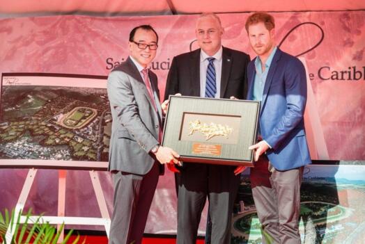 張祖德與切斯特尼(中)、英國哈里王子(右)出席“加勒比海之珠”開發項目奠基儀式(圖片來源:聯合新聞網)