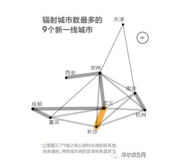 城市并非孤立的个体,任何一座城市都有将自身资源辐射给其他城市的潜力。当这种城市辐射力表现出色时,就可以通过交通、物流等途径,将商品、资金、人才和文化资源传输到周边城市,并使自己成为整个城市网络的中心。