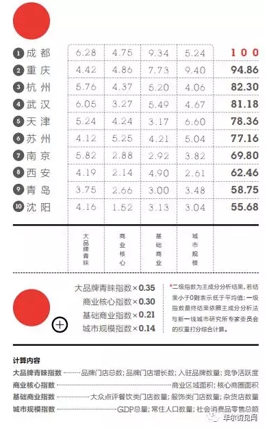 评选用了160个品牌的商业数据、17家互联网公司的用户行为数据和数据机构的城市大数据,涵盖了近100个基础数据指标,按照商业资源集聚度、城市枢纽性、城市人活跃度、生活方式多样性、未来可塑性五大指标评估了中国的城市。