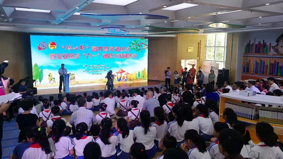 【香港商报网讯】记者王娜报道: 5月31日上午,由宝安区团区委、区关工委、区教育局等单位主办,区青少年服务中心承办的广东省首家“冰心奖”图书馆开馆仪式暨宝安区庆“六一”德育大观园活动在青少年服务中心隆重举行。活动主办方邀请了中国音乐家协会名誉主席傅庚辰将军,延安鲁艺校友会会长马海莹女士等嘉宾,宝安区委书记黄敏,区领导吴晶、黄盛华、蔡英权等出席活动,参加本次活动的还有历届“冰心奖”获奖代表以及宝安崛起诚信实验学校的500名学生。