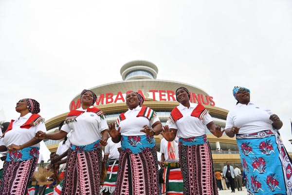 通車儀式當天在蒙內鐵路起點蒙巴薩西站舉行。伴隨着充滿律動的非洲傳統音樂,現場旗幟飄揚、歌舞歡暢。中國國家主席習近平特使、國務委員王勇,肯尼亞總統肯雅塔和副總統魯托等出席通車儀式。