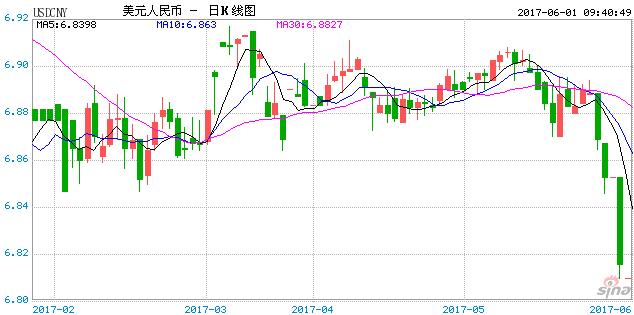 6月1日,人民幣(6.7935, -0.0220, -0.32%)兌主要貨幣中間價全線上揚。人民幣兌美元中間價報6.8090,較上日中間價6.8633飆漲543點。人民幣兌美元中間價上調幅度創1月6日來最大,中間價水平為逾半年來的最高。