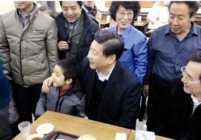 2013年12月28日,習近平在北京市月壇北路慶豐包子鋪吃午餐,期間與袁寶小朋友合影。