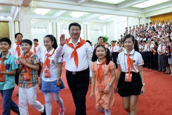 2015年6月1日,習近平在北京人民大會堂親切會見中國少年先鋒隊第七次全國代表大會全體代表。新華社記者王曄攝