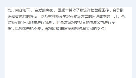 順豐暫停數據接口後,淘寶上順豐包裹的物流詳情無法正常回傳,商家無法確定買家是否已經收貨,買家也不能跟蹤商品的實時信息。