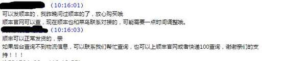 淘寶賣家:順豐告訴我可以發貨 官網可查物流信息