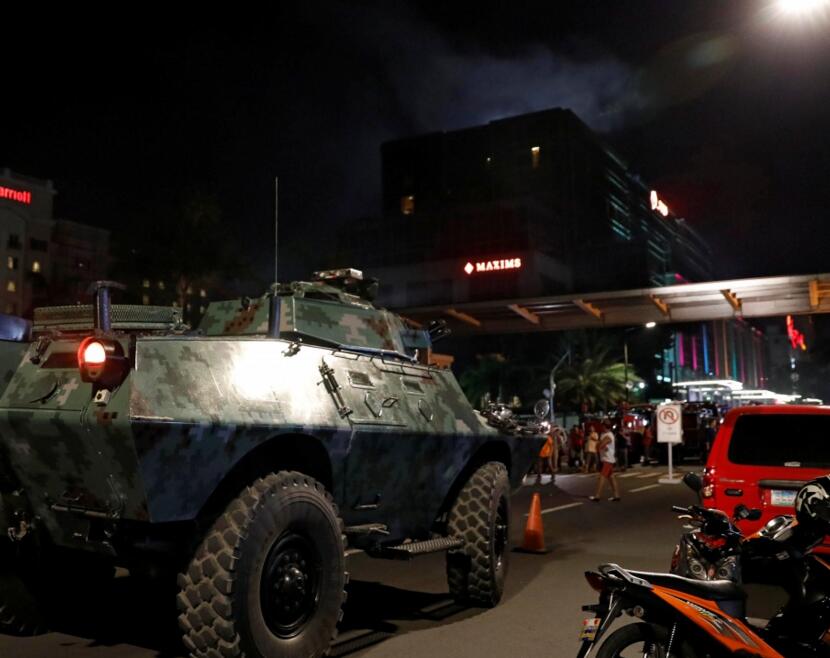 菲律賓軍方發言人稱,警方現時已控制現場,軍方現密切注視事件發展。另外,當地消防部門指該建築物的二樓有起火。