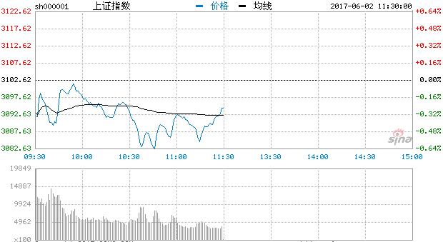 6月2日消息,滬深兩市早盤低開,延續弱勢調整,開盤后航天軍工板塊一度帶領大盤反彈,但隨后回落,創指開盤即創出年內新低。臨近收盤,滬指有所回升。截止上午收盤,滬指報3094.46,跌0.26%,創指報1719.43,跌0.52%。從盤面上看,粵港澳概念、雄安新區、杭州亞運會、鈦白粉居板塊漲幅榜前列,摘帽概念、保險、油改居板塊跌幅榜前列。