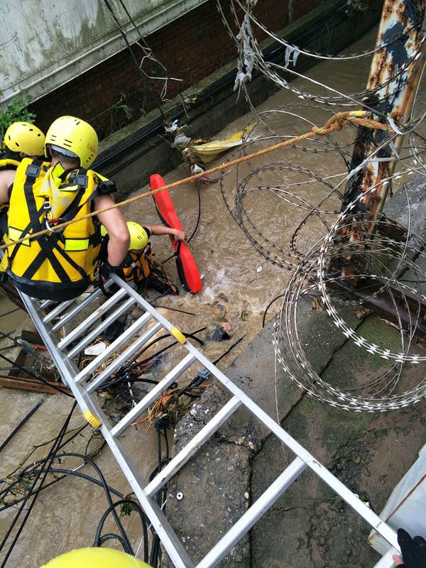 而新北市八里區1名年約50歲的電單車女騎士被洪水沖落排水溝,被尋獲時遭電線纏困溺亡。另外,新北還有1男子被大水沖走失蹤,消防人員正持續搜救。