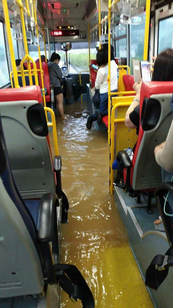 至於受傷的5人分別位於基隆與新北市,包括受困公車站、大貨車翻覆、遭土石掩埋、受困地下室遭割傷,目前都已送醫救治。從網民上載到facebook的片段可見,基隆市一部的士被水淹沒,乘客自行逃出后,司機由附近民眾築成人鏈協助逃離。
