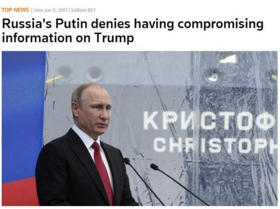 【環球網綜合報道】據俄羅斯衛星新聞網6月5日報道,俄羅斯總統普京表示,有關俄羅斯似乎掌握美國總統特朗普“黑材料”的消息是又一個無稽之談。