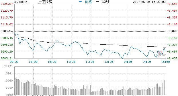 6月5日消息,滬深兩市全日維持分化格局,滬指低開后持續在平盤線下方震蕩,收盤失守20日均線。創指早盤在次新股板塊的帶動下高開高走,臨近早盤收盤有所回落,但午后再次拉回,基本維持早盤漲勢,兩市成交量均有所萎縮。截止收盤,滬指報3091.66,跌0.45%,創指報1761.25,漲0.88%。