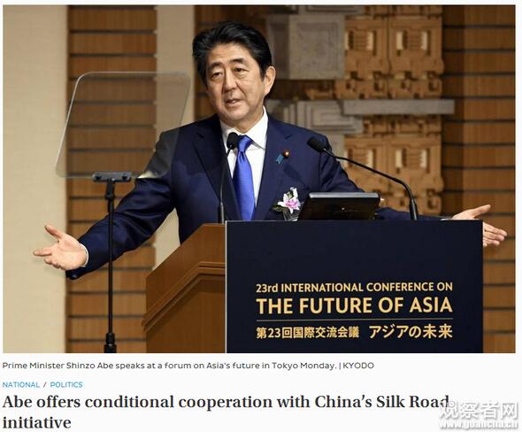 美國派遣代表團出席了中國以“一帶一路”為主題于5月召開的國際會議。日本也派出自民黨干事長二階俊博赴會,安倍此后就參加中國主導的亞洲基礎設施投資銀行(AIIB)表達了積極意向,進而發展成此次發言。