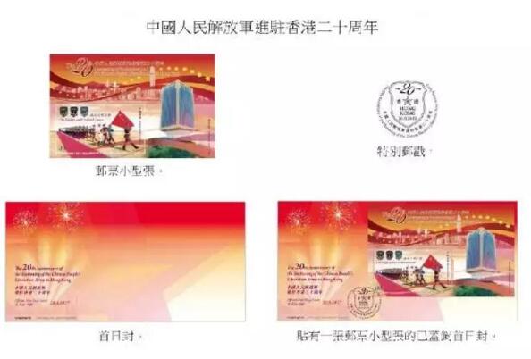 香港郵政6月5日宣布:一套以“中國人民解放軍進駐香港二十周年”為題的郵票小型張及相關集郵品6月20日(星期二)推出發售。