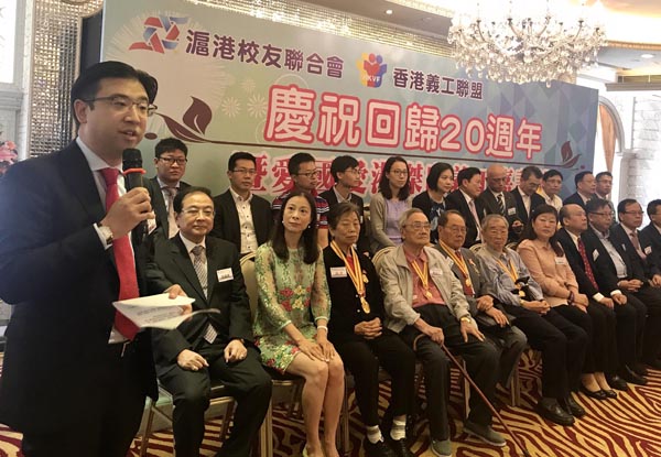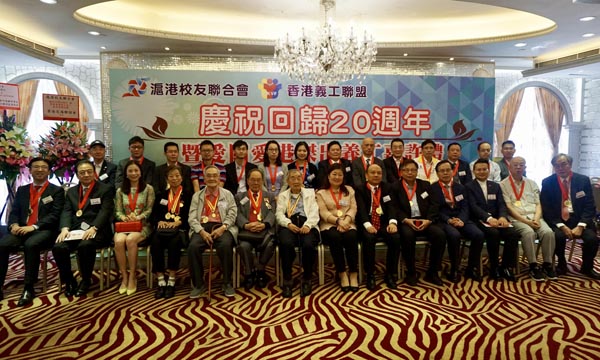 滬港校友聯合會舉行慶祝香港回歸祖國20周年暨愛國愛港杰出義工嘉許禮,賓主合影。