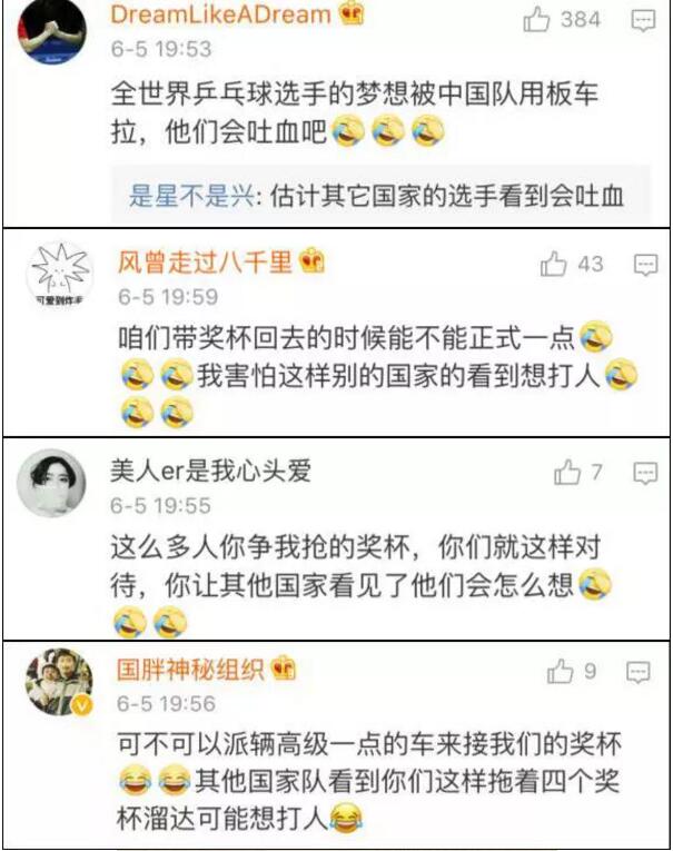 國乒選手:我們不贏得獎杯,
