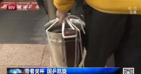 國乒隊搬運獎杯的方式。