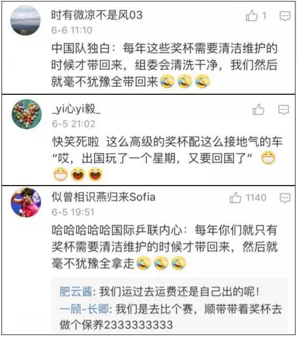 由於國乒隊在各屆世乒賽上的出色表現,大家都懂的,獎杯們都是怎么出去怎么回來。