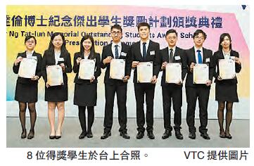 【香港商報网訊】實習記者葉柏希報道:職業訓練局昨日舉行「伍達倫博士紀念杰出學生獎勵計劃」頒獎典禮,9名學生在學業、課外活動及社區服務等方面表現卓越,各獲發1萬元獎學金。獎勵計劃捐助人代表伍慧明致辭時勉勵學生,希望年輕人抱勇於嘗試的態度面對挑戰、迎難而上,向目標全力進發,運用專業知識、通用技能發揮所長,回饋社會。