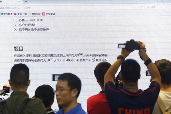 媒體記者在觀看高考機器人AI-Maths答北京文科數學卷(圖片來自:澎湃新聞)