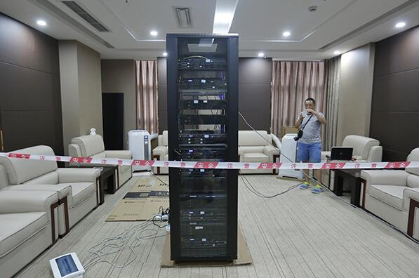 AI-MATHS是一個黑色的大機箱,被安排在一間完全斷網的房間內,并用警戒線圍起,黑色的服務器機箱中有11臺服務器負責解題。為保證考試公正,考試現場沒有人可以操作這些服務器。房間門外貼有“所有設備斷網段庫”的標識。