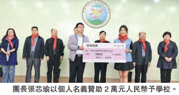 5日上午,訪問團赴臨潼區小金小學慰問該校100餘位留守兒童和貧困兒童,學生們用歡快的鼓樂表演歡迎訪問團一行。小金中心小學位於驪山山脊東部,由於山區居住分散,交通不便,是一所山區全日制寄宿學校,有300餘名小學生每天學習、生活全部在校園里度過。部分學生父母長期在外打工,缺乏家庭的關愛和溫暖。臨行前,訪問團成員慷慨解囊為孩子們購置了學習及生活用品,并特邀第四軍醫大學牙科醫院的醫生,為學生們義務驗牙。張芯瑜向學校捐贈了2萬元人民幣助學款。團員們也抓緊時間,與學生們積極互動。