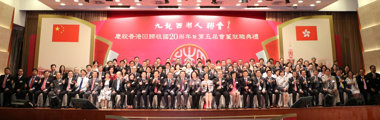 九龍西潮人聯會慶祝香港回歸祖國20周年暨第五屆會董就職典禮,宾主千人欢聚,场面热闹。