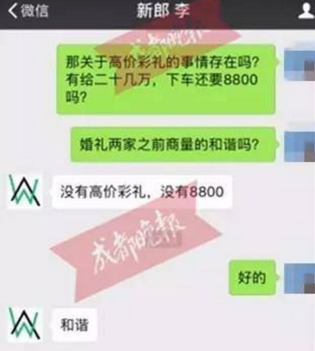 新郎小李:婚禮的事,兩家人商量得很和諧,完全沒有高價彩禮和下車費8800的說法。