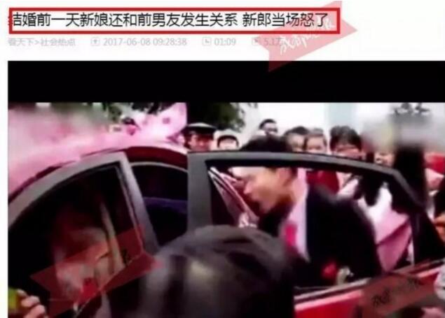 而在6月8日發布的一段視頻中,標題就更為“惹火”,直接顯示為,“結婚前一天新娘還和前男友發生關系,新郎當場怒了。”旁白還包含有“結婚當天,前男友把視頻發給新郎看”等內容。