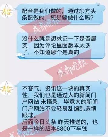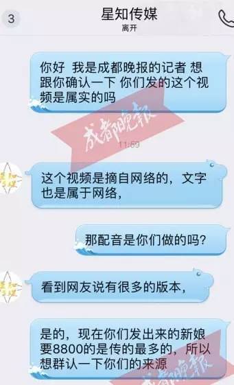 成都晚報記者通過加公司QQ號對話到了“星知傳媒”工作人員,求證內容是否屬實,該工作人員明確回應記者,這個視頻是摘自網絡的,文字也是來源網絡,“配音是由我們做的,內容是通過大的新聞門戶網站來摘錄。”不過,該工作人員并未明確回應,文字內容到底從何而來。