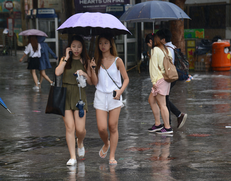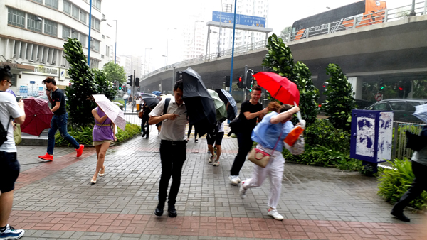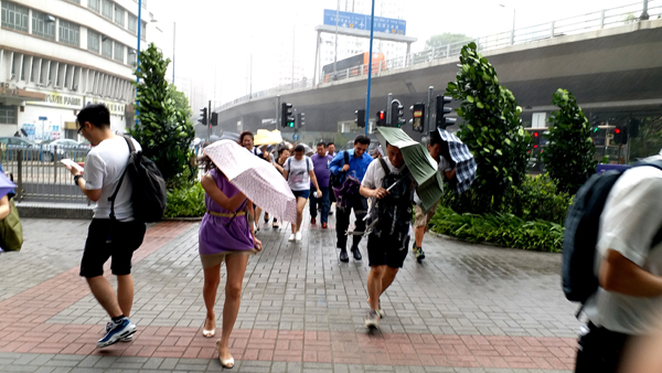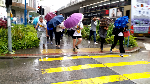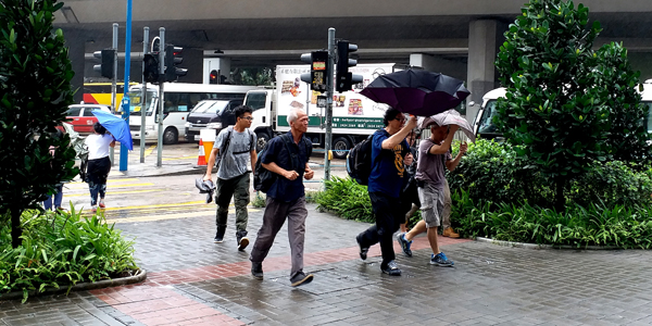 天文台改發八號信號後,很多市民開始陸續下班。記者何家驊攝