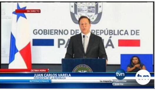 巴拿馬時間6月12日晚8時,巴拿馬總統胡安·卡洛斯·巴雷拉(Juan Carlos Varela Rodriguez)在國家電視台全國新聞聯播節目上,正式宣布:巴拿馬共和國與中華人民共和國建立外交關系;同時與“中華民國”斷交。