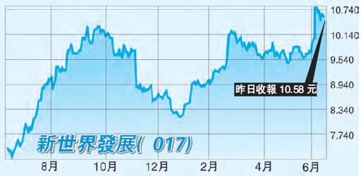 新世界發展(017)第三代鄭志剛接班后勵精圖治、動作頻仍,繼去年成功私有化新世界中國后,近期密鑼緊鼓部署新世界百貨(825)私有化,股價突破10元大關,年初至今累升近三成!