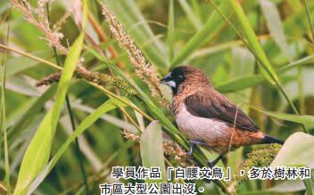 香港觀鳥會月初聯同港鐵,在將軍澳Pop Corn商場舉辦「跟着港鐵去觀鳥」攝影藝術展,展出多款學員的攝影作品,除飽覽林林總總的雀鳥品種、大自然美如仙境的景色外,同時盡顯香港生物多樣性。該會副主席吳祖南稱,這次的攝影展覽正好將藝術創作融入生態教育中,利用藝術教育作切入點,以表達對大自然的關愛,同時提高公眾參與,他認為藝術創作有一種獨特力量,既可表達情感,亦能令人滿足;吳祖南期望可將保育生態的信息推廣至更廣闊層面。