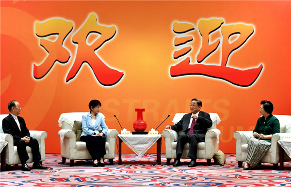 6月17日,中共中央政治局常委、全国政协主席俞正声在厦门会见前来参加第九届海峡论坛的中国国民党主席洪秀柱等台湾嘉宾。 中新社